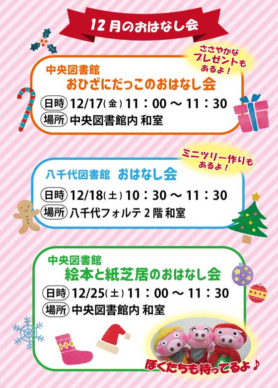 中央図書館・八千代図書館でも12月のおはなし会を開催予定です!