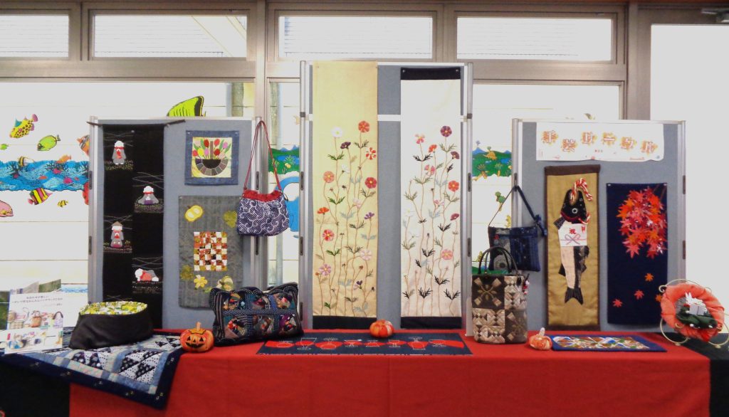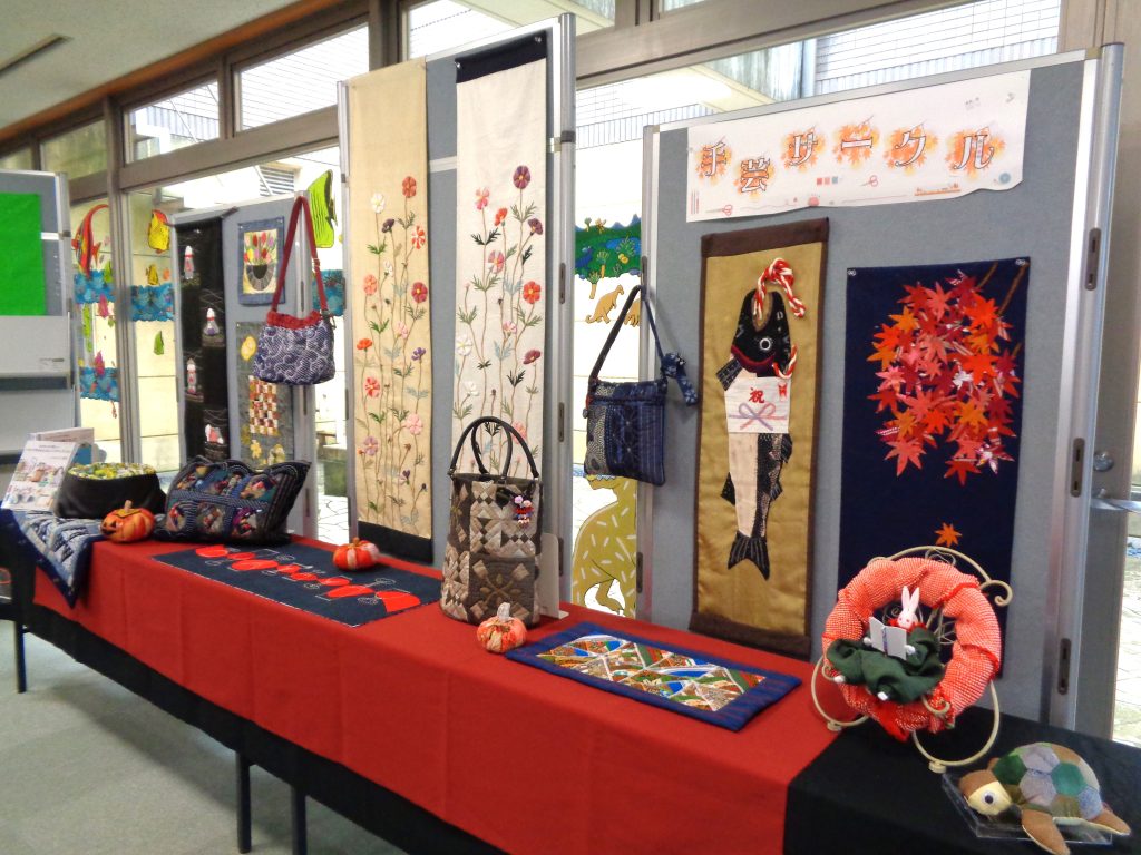 甲田図書館では、手芸サークルの方々による作品を展示中です。
